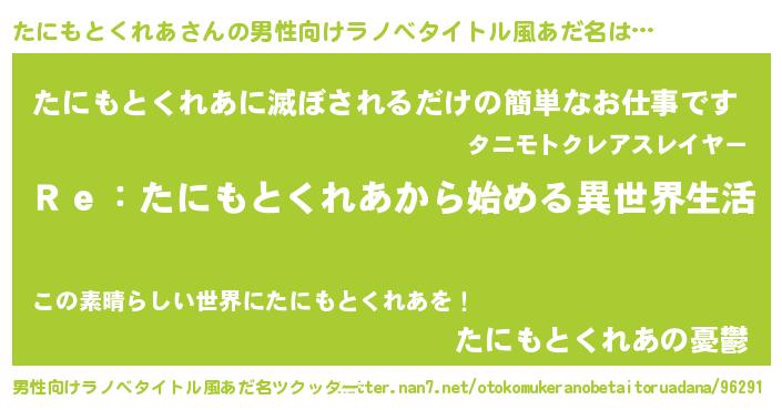 | 意味不明あだ名 | 『自称たにもとくれあ』 |