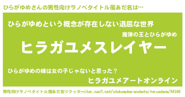 | ヘコむあだ名 | 『ひらがゆめ(笑)』『ひらもー』 |