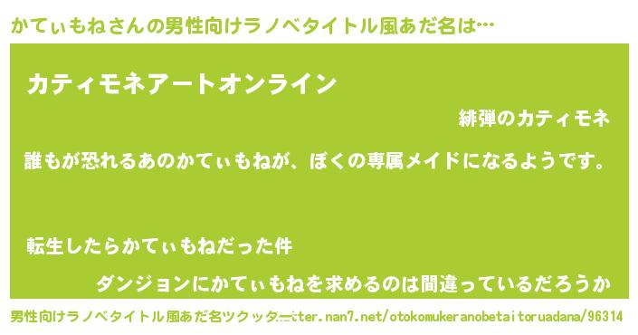 | 女子向けラノベタイトル風あだ名 | 『異世界でカフェかてぃもねを開店しました。』 |