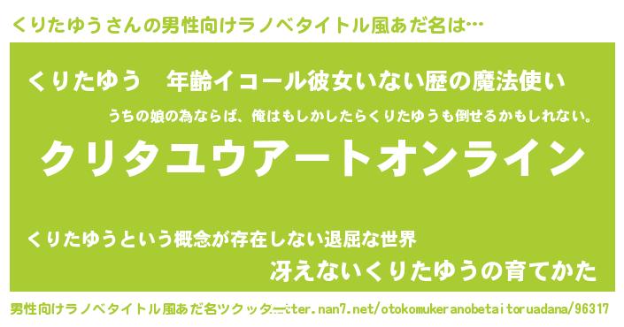 | 胡散臭い通販商品みたいなあだ名 | 『モテモテ間違いなしブレスレット…その名も「くりたゆう」』 |