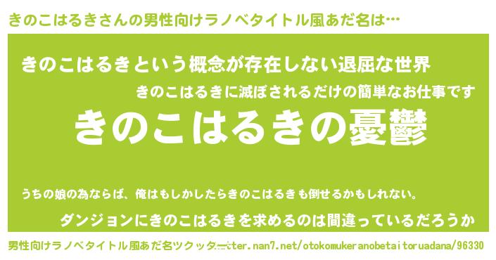 | 女子向けラノベタイトル風あだ名 | 『(仮)きのこはるきのやんごとなき事情』 |