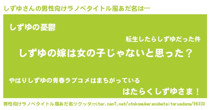 | 女子向けラノベタイトル風あだ名 | 『しずゆ様がみてる』 |
