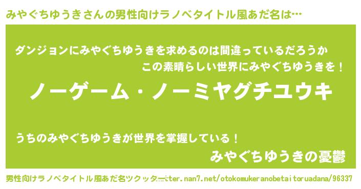 | 女子向けラノベタイトル風あだ名 | 『死神みやぐちゆうきの再婚』 |