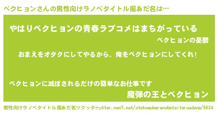 | 女子向けラノベタイトル風あだ名 | 『ベクヒョン夫妻のなれそめ』 |