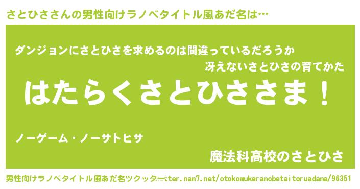 | ヘコむあだ名 | 『さとっちょ』『さとひさ(震え声)』 |