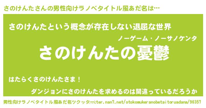 | 女子向けラノベタイトル風あだ名 | 『さのけんた姫と円卓の騎士』 |