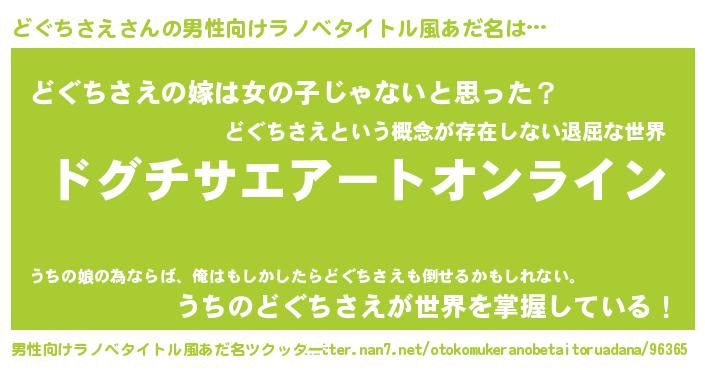 | 胡散臭い通販商品みたいなあだ名 | 『億万長者になれる水晶球…その名も「どぐちさえ」』 |