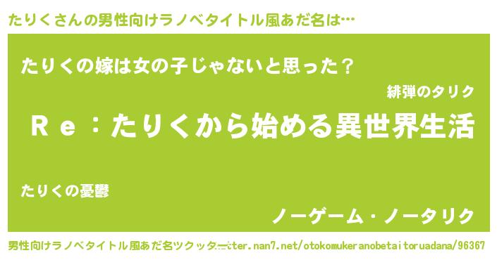 | ヒーロー風カッコイイあだ名 | 『究極戦士タリク』『暗黒騎士タリ』 |