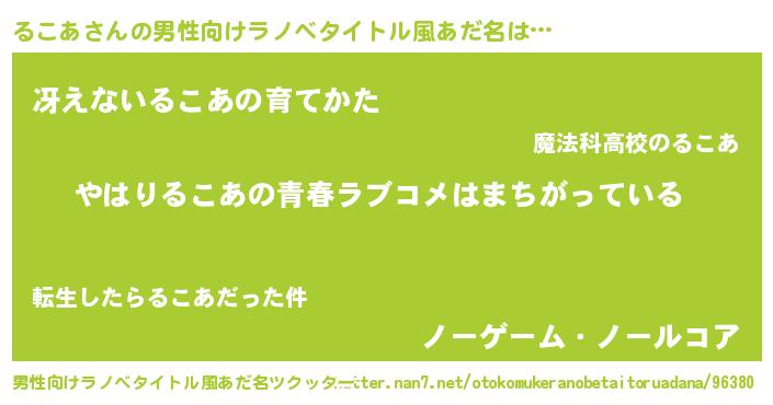 | 女子向けラノベタイトル風あだ名 | 『るこあの雑貨屋さん』 |
