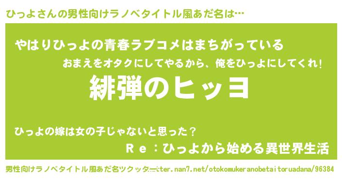 | 女子向けラノベタイトル風あだ名 | 『シンデレラひっよ家の靴箱館』 |