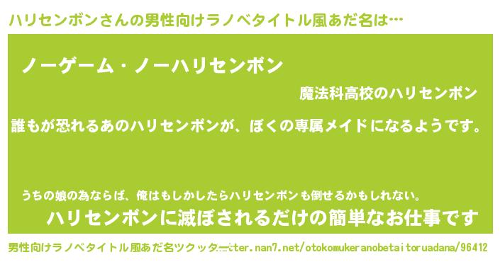 | 女子向けラノベタイトル風あだ名 | 『ハリセンボンの契約王妃』 |