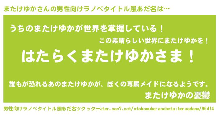 | 胡散臭い通販商品みたいなあだ名 | 『必ず成功するブレスレット…その名も「またけゆか」』 |