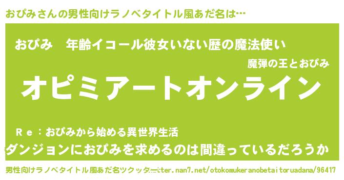 | 胡散臭い通販商品みたいなあだ名 | 『億万長者になれる水晶球…その名も「おぴみ」』 |