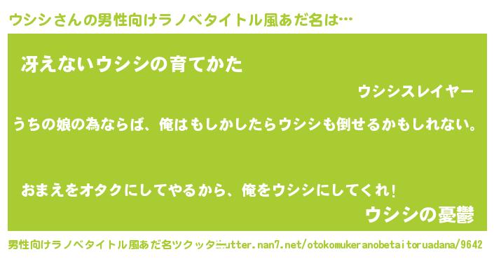 | 女子向けラノベタイトル風あだ名 | 『ウシシの婚約者』 |