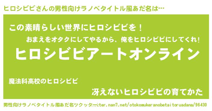 | 女子向けラノベタイトル風あだ名 | 『ヒロシビビ姫と円卓の騎士』 |