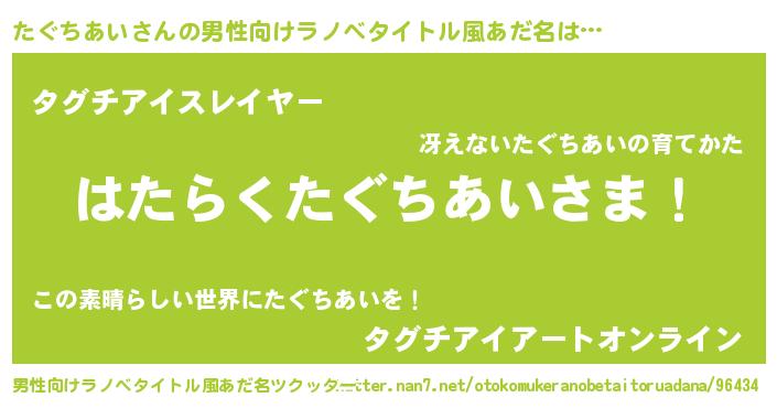 | ヒーロー風カッコイイあだ名 | 『スーパータグチアイ』『仮面タグダー』 |