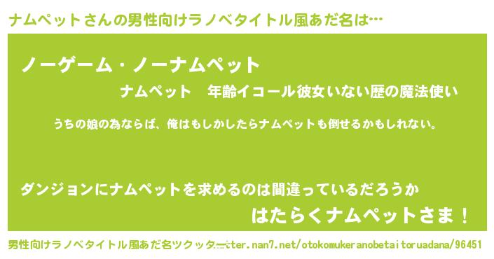 | ファンタジー風あだ名 | 『エターナルナムペットー』『ナムフェル』 |