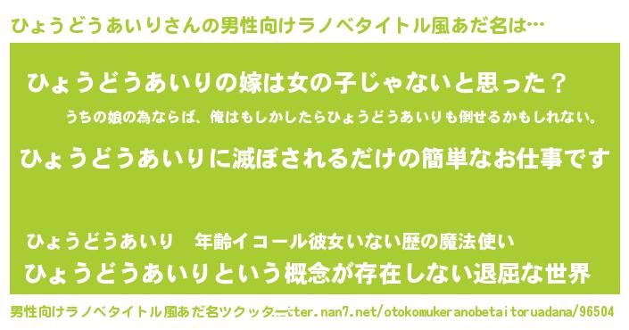 | 意味不明あだ名 | 『とにかく怪しいひょうどうあいり』 |