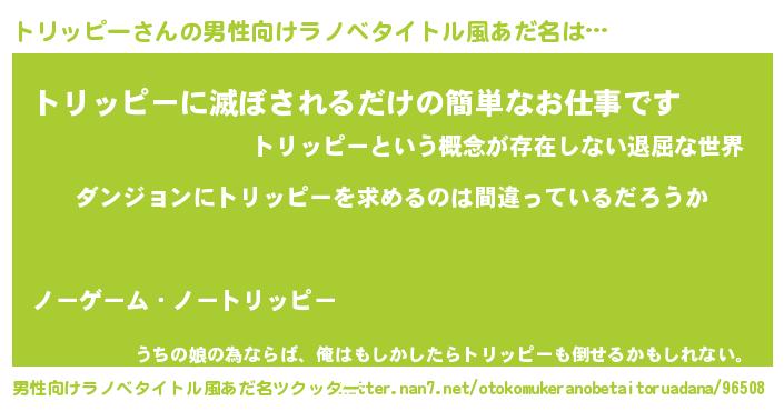 | 女子向けラノベタイトル風あだ名 | 『トリッピーの卵を拾いまして』 |
