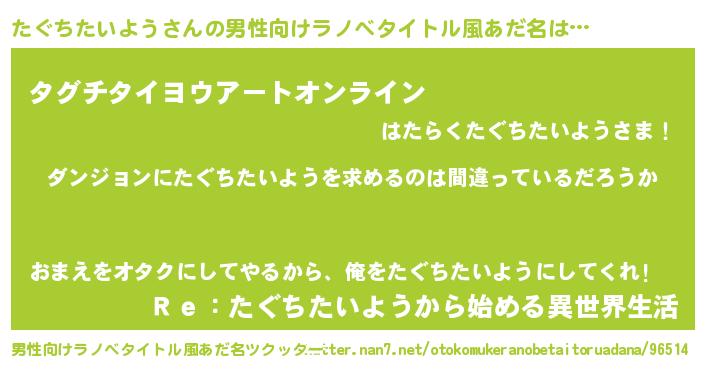 | 女子向けラノベタイトル風あだ名 | 『たぐちたいようは平凡を望む』 |