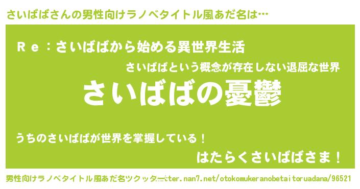 | ヘコむあだ名 | 『さいにゅー』『さいばば(笑)』 |