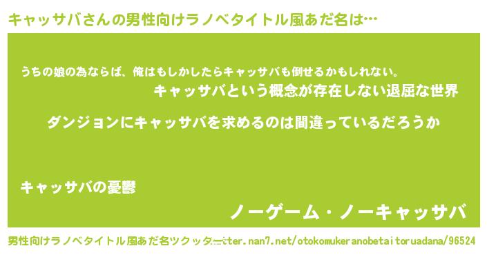 | 女子向けラノベタイトル風あだ名 | 『キャッサバは平凡を望む』 |