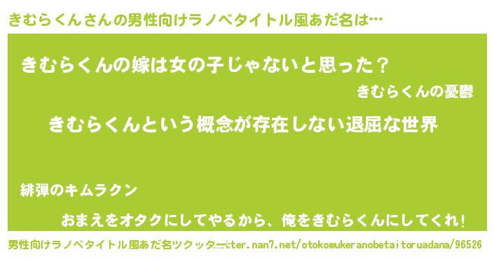 | 女子向けラノベタイトル風あだ名 | 『きむらくんの契約王妃』 |