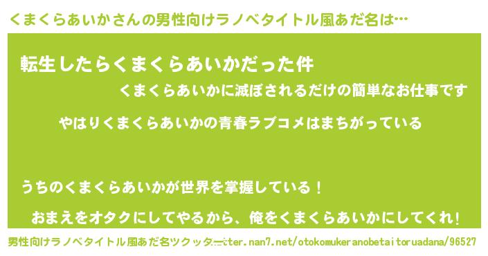 | 女子向けラノベタイトル風あだ名 | 『くまくらあいかの雑貨屋さん』 |