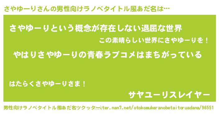 | 女子向けラノベタイトル風あだ名 | 『さやゆーり伯爵の花嫁』 |