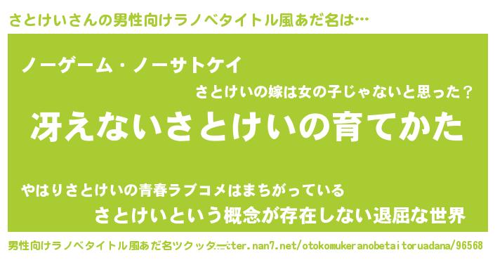 | ヒーロー風カッコイイあだ名 | 『愛の使者さとけい』『ネオサトケイ』 |