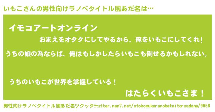 | 女子向けラノベタイトル風あだ名 | 『いもこの婚約者』『いもこ恋絵巻』 |