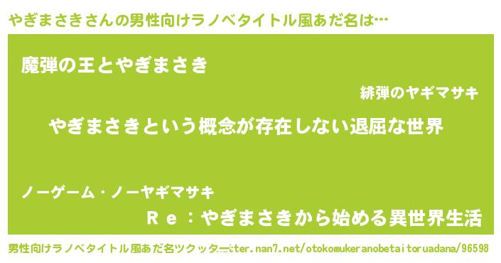 | 女子向けラノベタイトル風あだ名 | 『異世界で失敗しない100のやぎまさき』 |