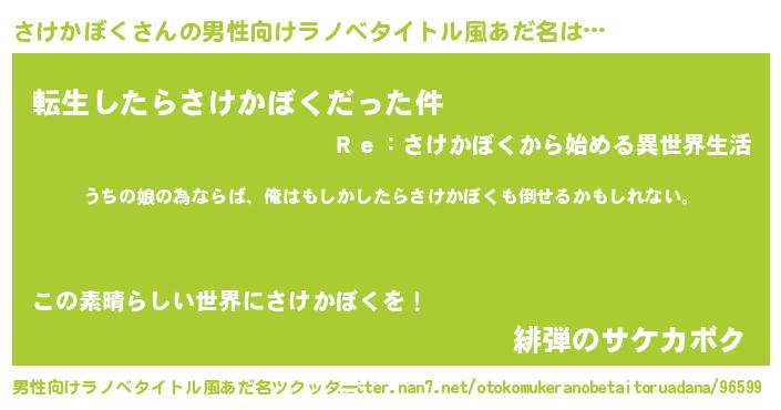 | 意味不明あだ名 | 『さけかぼくフォーエバー』 |