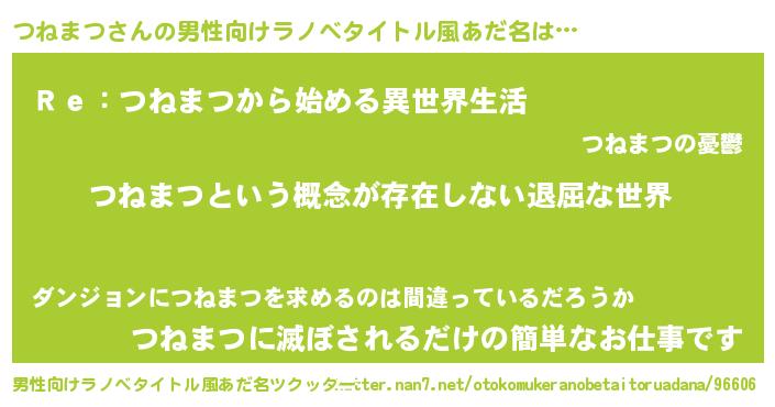 | 女子向けラノベタイトル風あだ名 | 『異世界で失敗しない100のつねまつ』 |