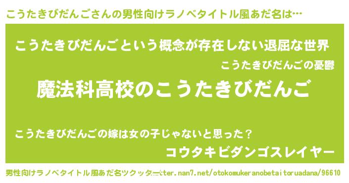 | 伝説のあだ名 | 『聞きしに勝る勇者こうたきびだんご』 |