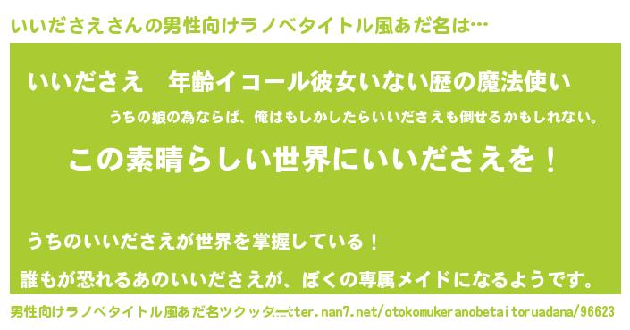 | 胡散臭い通販商品みたいなあだ名 | 『あなたにだけ特別に提供する100年もののヴィンテージワイン…その名も「いいださえ」』 |