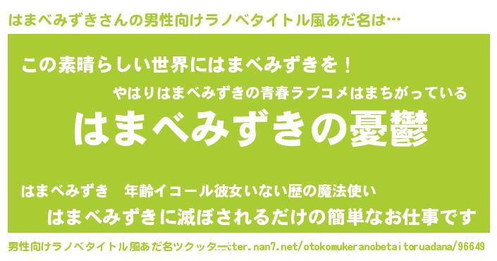 | 女子向けラノベタイトル風あだ名 | 『(仮)はまべみずきのやんごとなき事情』 |