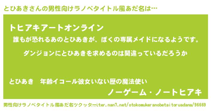 | 女子向けラノベタイトル風あだ名 | 『とひあきは平凡を望む』 |