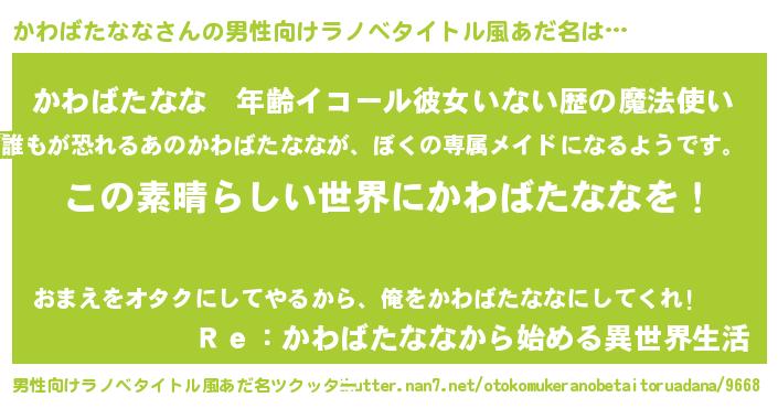 かわばたななさんの男性向けラノベタイトル風あだ名をツクッター!