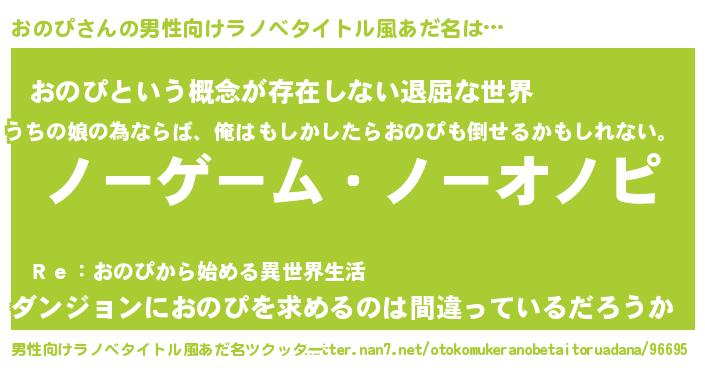 | 女子向けラノベタイトル風あだ名 | 『おのぴ恋絵巻』『おのぴの契約王妃』 |