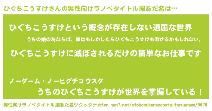 | 女子向けラノベタイトル風あだ名 | 『横柄ひぐちこうすけと宰相陛下』 |