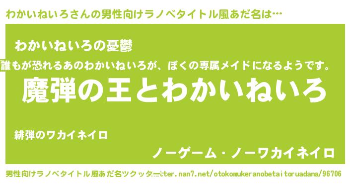 | 女子向けラノベタイトル風あだ名 | 『乙女ゲームの破滅フラグしかない悪役わかいねいろに転生してしまった…』 |