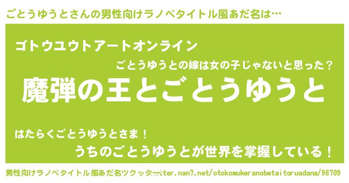 | 女子向けラノベタイトル風あだ名 | 『ごとうゆうとが死なない童話 林檎のごとうゆうとの診療簿』 |