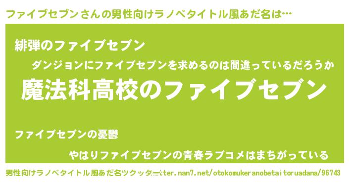 | 女子向けラノベタイトル風あだ名 | 『ファイブセブンなんてお断りですっ。』 |