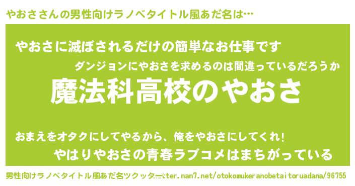 | 意味不明あだ名 | 『自称やおさ』『やおさフォーエバー』 |