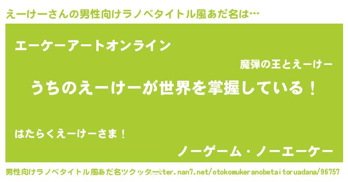 えーけーさんの男性向けラノベタイトル風あだ名をツクッター!