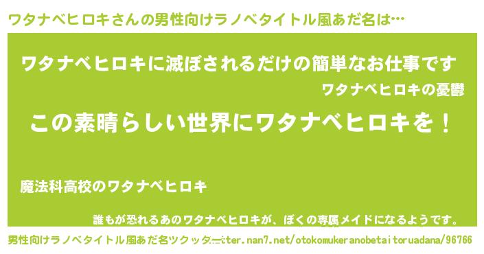 | 胡散臭い通販商品みたいなあだ名 | 『あなたにだけ特別に提供する100年もののヴィンテージワイン…その名も「ワタナベヒロキ」』 |