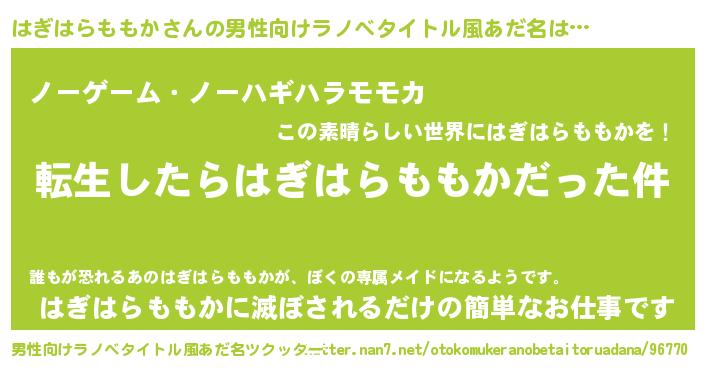 | ヘコむあだ名 | 『はぎはらももか(笑)』『はぎっふぃ~』 |