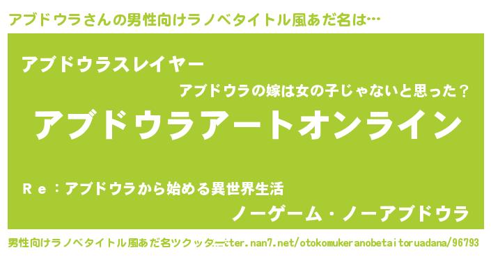 | ヒーロー風カッコイイあだ名 | 『スーパーアブドウラ』『銀牙騎士アブ』 |
