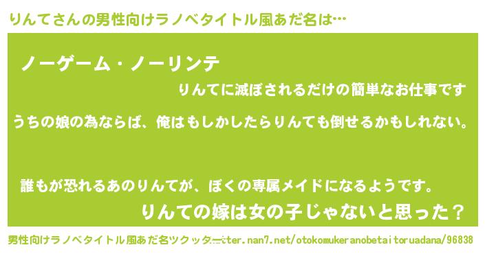| 女子向けラノベタイトル風あだ名 | 『りんての婚約者』『死神りんての再婚』 |